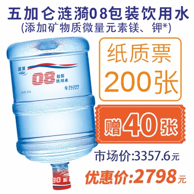 赠:涟漪08包装饮用水纸质水票5加仑装(18.9L)40张,价值:596元